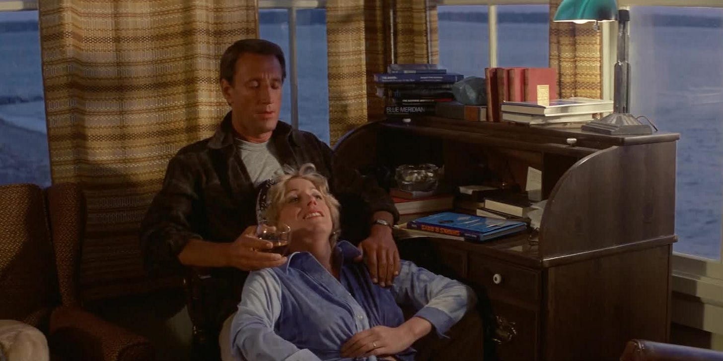 If you’ve seen the movie, or watched any of the numerous “Making of Jaws” documentaries, you already know that Benchley and screenwriter Carl Gottlieb wisely excised the Ellen-Matt affair completely from the final script. Then Spielberg took it one step further by casting actors in those roles that would make such an affair, as written in the book, not only unsettling onscreen but potentially implausible too. I mean, who wants to see a version of Confessions of a Young American Housewife starring stately Lorraine Gary and squirrely Richard Dreyfuss? How would that even work? I’m guessing the pairing would be even more prone to failure than the infamous jerry-rigged animatronic shark. This is young ‘70s Spielberg we’re talking about, not some softcore Joe Sarno. This is not the same Spielberg who thoughtfully reflected on his own troubled mother’s marital infidelities almost fifty years later in The Fabelmans.
